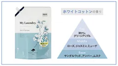 My Laundry" is a brand of fabric softener that provides the functions required of fabric softeners, such as softness and fragrance, and incorporates what we can do for our families and the future of the earth into the daily task of laundering. In response to customer demand, the popular flavors "Jasmine," "White Cotton," and "Coconut" are now available in a new 1,440mL large-volume version, three times the regular size!