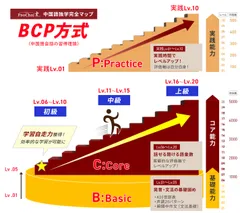 The BCP method is a learning theory in which the basics such as pronunciation and grammar are solidified in B (Basic), vocabulary for "speaking and listening" is increased step by step in C (Core), and instantaneous usability is cultivated in P (Practice) through practice such as conversation, reading, and drama viewing. The "P" (Practice) is a learning theory to develop the ability to use the language instantly.