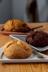 The rich taste of this new texture scone is based on Hokkaido butter and fresh cream, and finished with Hokkaido corn flour. Three types are available: Bourbon Vanilla, Triple Chocolat, and Miyako Kabocha (limited time only).