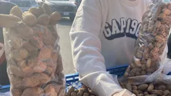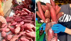 Get as many sweet potatoes as you can stuff into a bag! Even if they are out of the bag, it is safe as long as they are piled up without falling out.