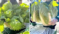 You get as much Chinese cabbage as you can hold in both hands for 5 seconds! You can't put it on the top after you hold it, so please be careful.
