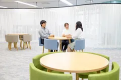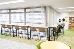 A new "communication area" has been created where attorneys and administrative staff can easily exchange opinions. The beige color scheme and colorful chairs in this calm space create both a soft and lively atmosphere. It is a place that draws out free ideas and encourages active communication.