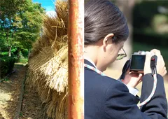 Each group created a different photo album, which will be placed in the "Photo Salon," the "Dahlia Garden," the "Shichikokuyama Farmers Center," the "Furusato Farm Tools Museum," the "Squirrel Garden," and the "West Garden. Also on display at the Photo Salon will be ornaments made from pine cones and acorn key chains, which were handmade from natural products collected by the students themselves.