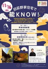 This is a day in autumn when you can listen to a story about Noh, experience Noh chanting, and watch a performance by Machida City-based Kikaku Inoue, a Noh performer of the Kinshun school. Recommended for those who are learning Noh for the first time.