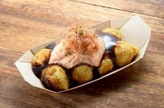 For those who want their takoyaki always hot, we recommend the "Sauce Takoyaki" topped with a generous amount of homemade sauce. There are also five other types, including cheese, teritama, and cod roe mayo.