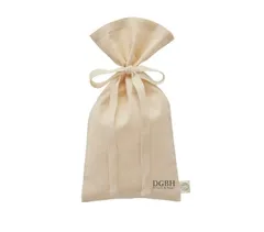 DGBH logo: The DGBH (Do Good, Be Happy!) logo is stamped on the organic cotton bag and drawstring. The gift recipient will be introduced to sustainable values.
