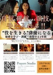 Prayers Studio is a group of people who have been researching and training for many years on how to give a high quality performance. To understand people, it is essential to understand their psychology, and for this reason we actively study and incorporate not only acting theory but also psychology and brain science.